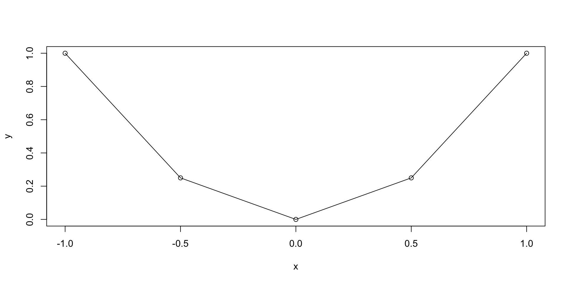 This is because we only computed y=x^2 on the grid x = (-1, -0.5, 0, 0.5, 1)