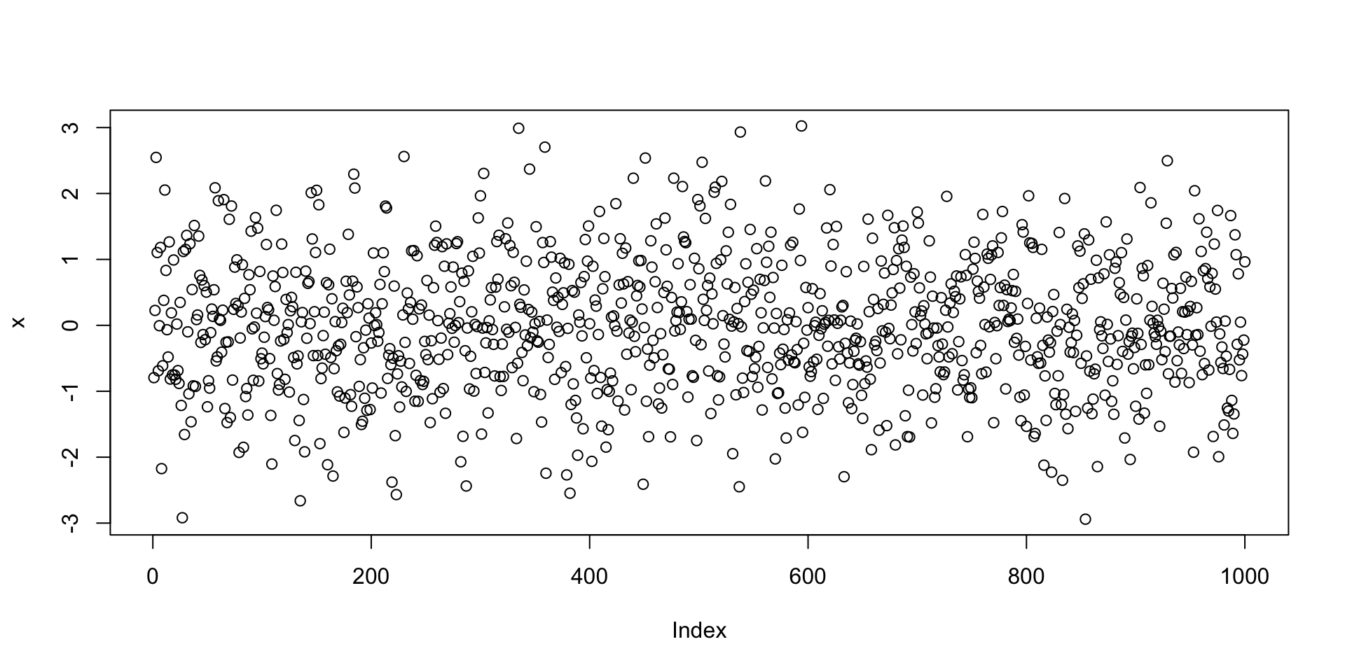 x with 1000 random normal valuesx via plot(x)plot(x) implicitly assumes that: