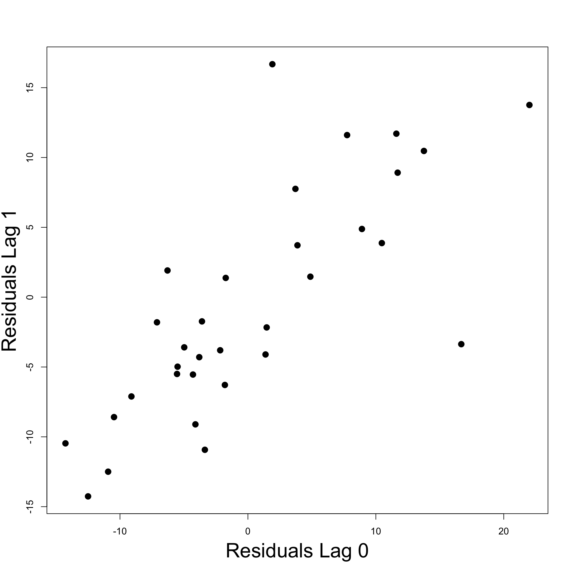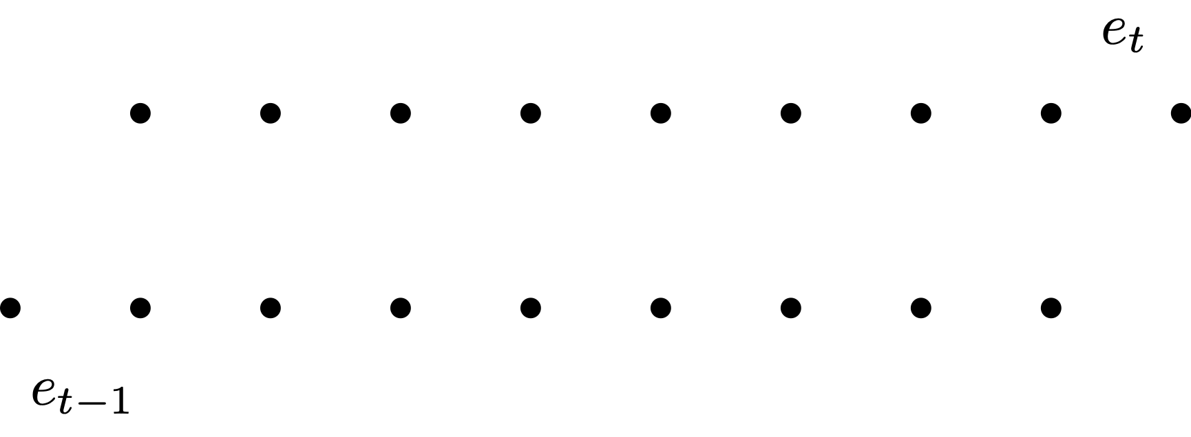 e_t \, \approx \, a + b \, e_{t-1} \quad \text{ for some } \,\, a , \, b \in \mathbb{R}