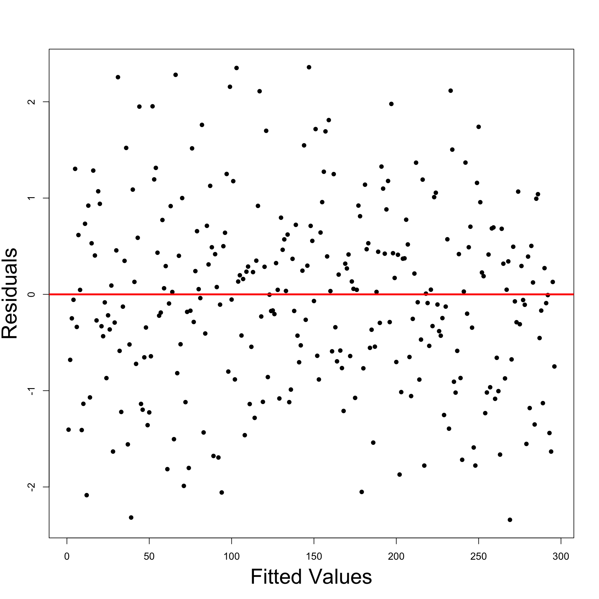 Homoscedasticity: There is a parameter \sigma^2 such that {\rm Var}[\varepsilon_i] = \sigma^2