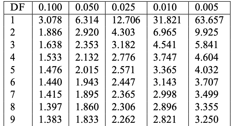 p<0.05 means that the test statistic t is extreme: \,\, P(t_{n-1}> |t|)<0.025
