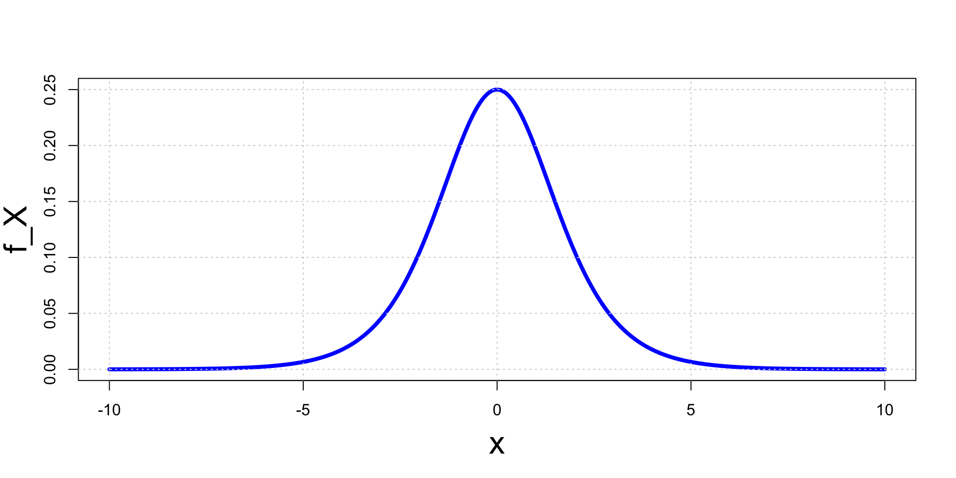 The random variable X has logistic distribution if its pdf is f_X(x) = \frac{e^{-x}}{(1+e^{-x})^2}