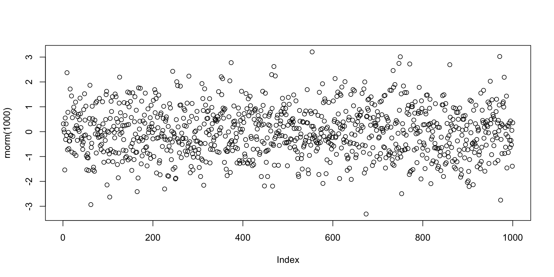 -> Set Working Directory -> Choose Directoryhelp(object_name)help() can be crypticLet us go back to the example of the command plot(rnorm(1000))