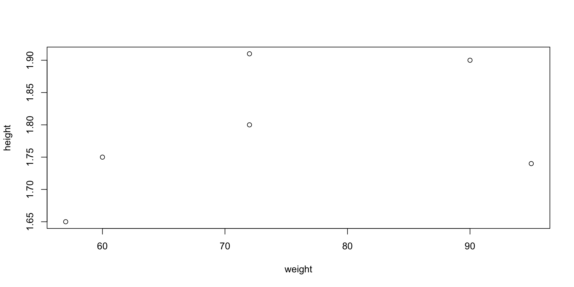 height <- c(1.7, 1.8, 1.6, 2, 1, 1.9)