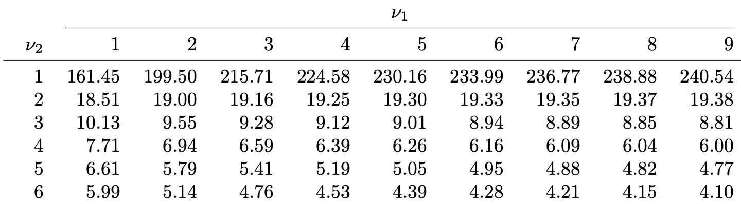 Sometimes the value F_{\nu_1,\nu_2}(\alpha) is missing from F-table