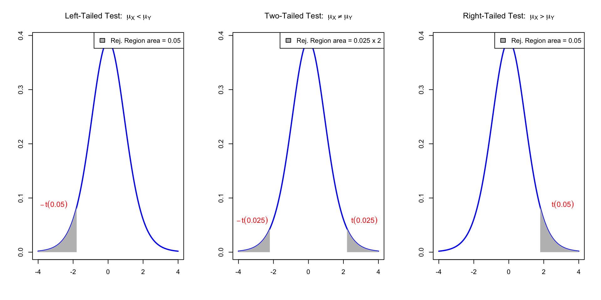 p < 0.05 \qquad \text{ or } \qquad t \in \,\,\text{Rejection Region}