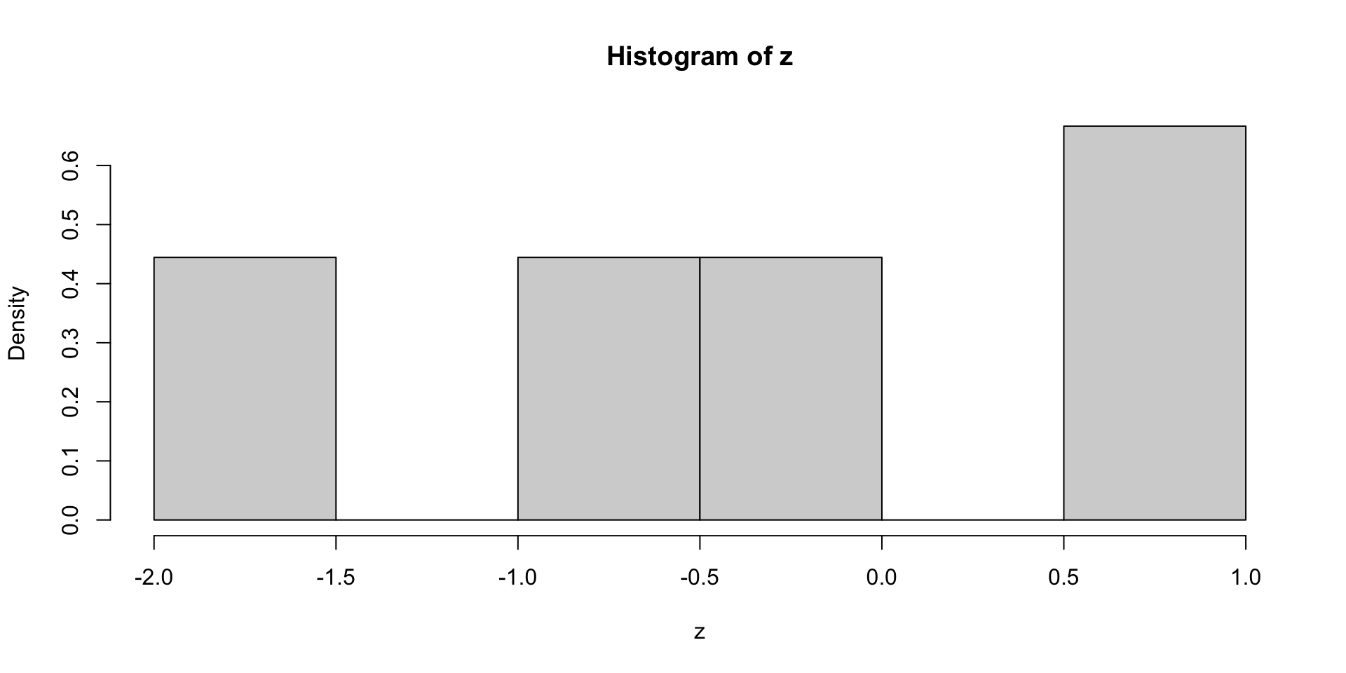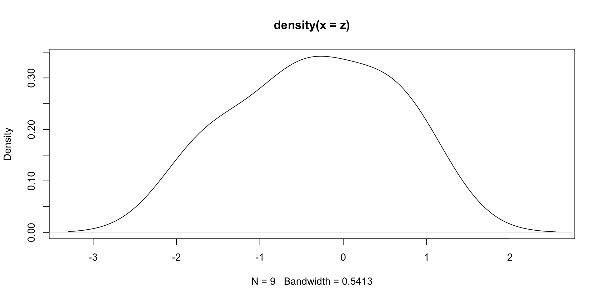 # Enter the Wages datamathematicians <-c(36, 40, 46, 54, 57, 58, 59, 60, 62, 63)accountants <-c(37, 37, 42, 44, 46, 48, 54, 56, 59, 60, 60, 64, 64)# Compute the estimated distributionsd.math <-density(mathematicians)d.acc <-density(accountants)# Plot the estimated distributionsplot(d.math, # Plot d.mathxlim =range(c(d.math$x, d.acc$x)), # Set x-axis rangeylim =range(c(d.math$y, d.acc$y)), # Set y-axis rangemain ="Estimated Distributions of Wages") # Add title to plotlines(d.acc, # Layer plot of d.acclty =2) # Use different line stylelegend("topleft", # Add legend at top-leftlegend =c("Mathematicians", # Labels for legend"Accountants"), lty =c(1, 2)) # Assign curves to legend