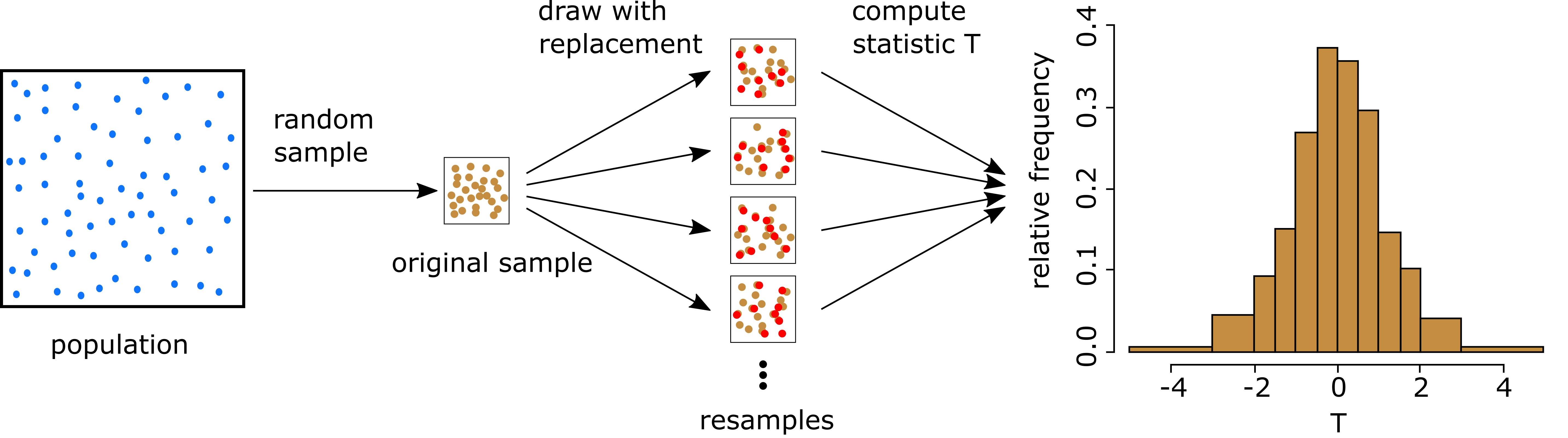• Original sample \{x_1,\ldots,x_n\} is drawn from the population \qquad (Image from Wikipedia)